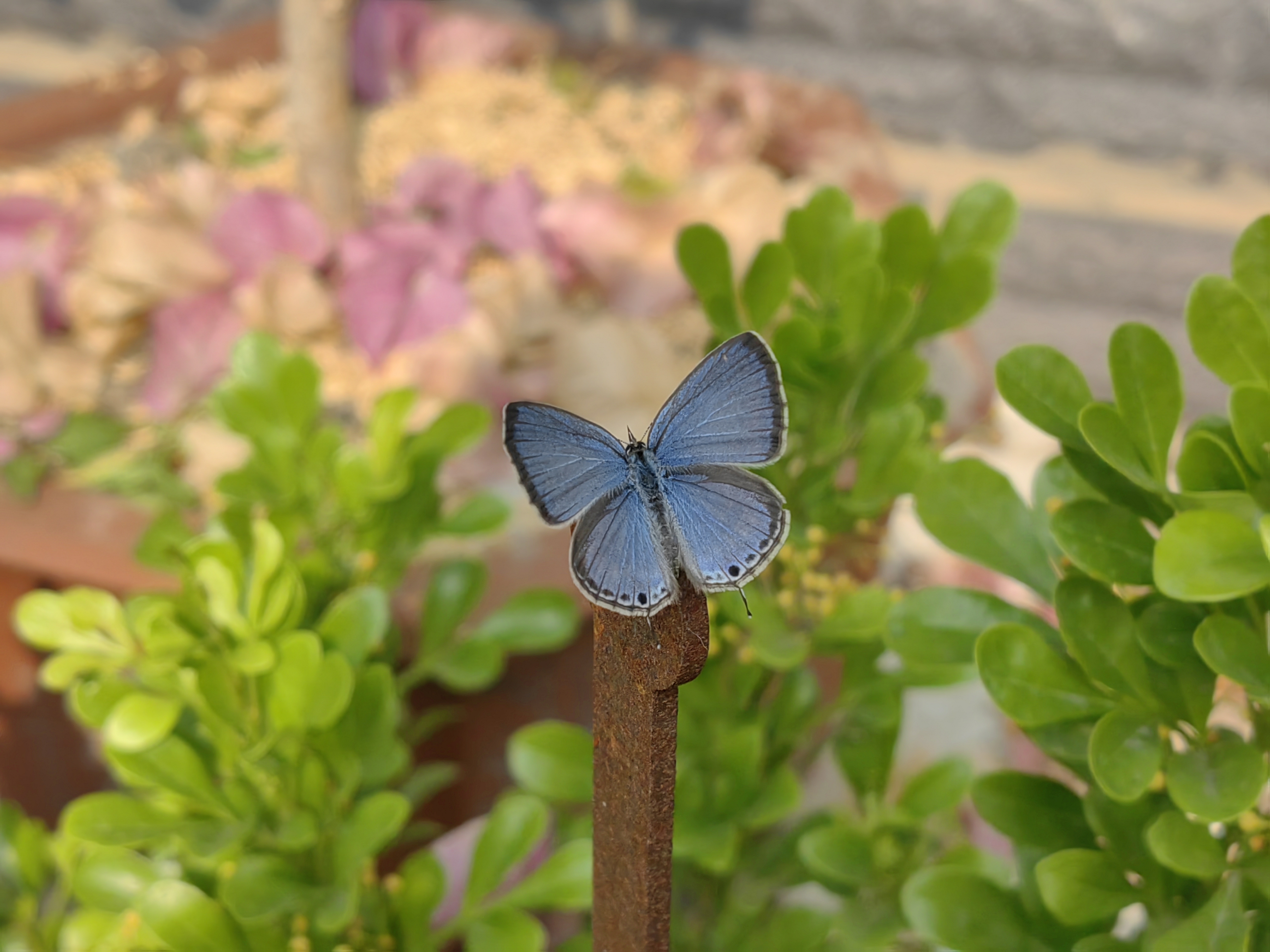 Unsere zweifarbigen (blau und schwarz) Griffe von PPR-Schweißmaschinen haben eine ähnliche Farbe wie dieser Schmetterling.